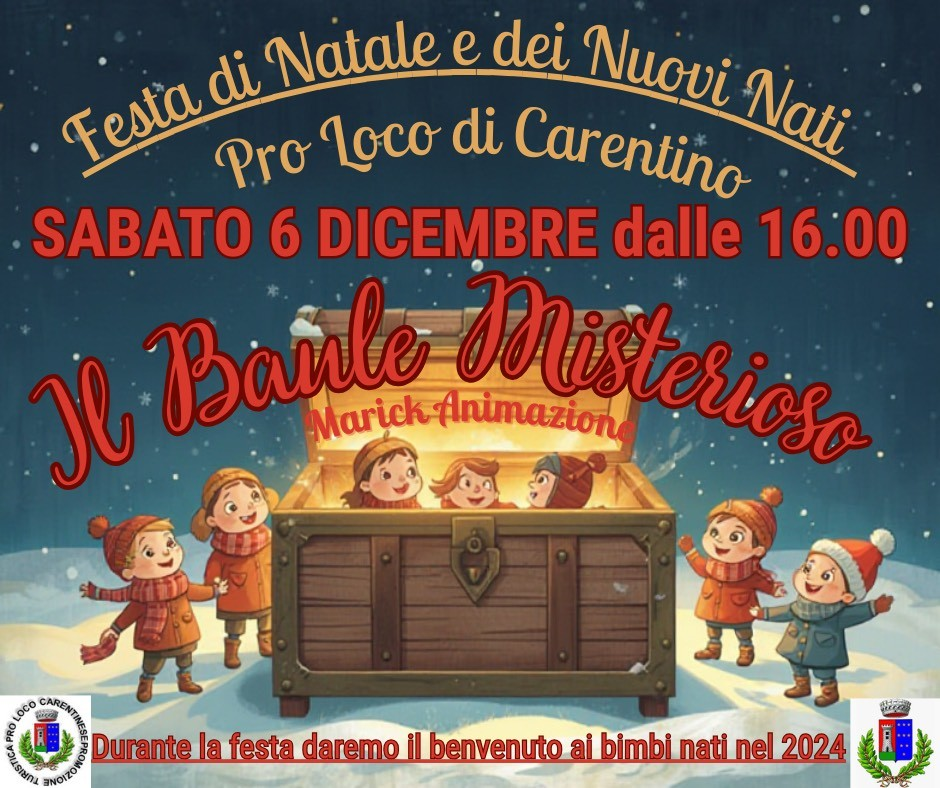 Spettacolo, merenda e celebrazione della Festa dei Nuovi Nati, per dare il benvenuto ai piccoli Carentinesi nati nel 2024.